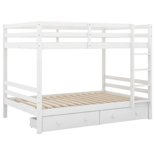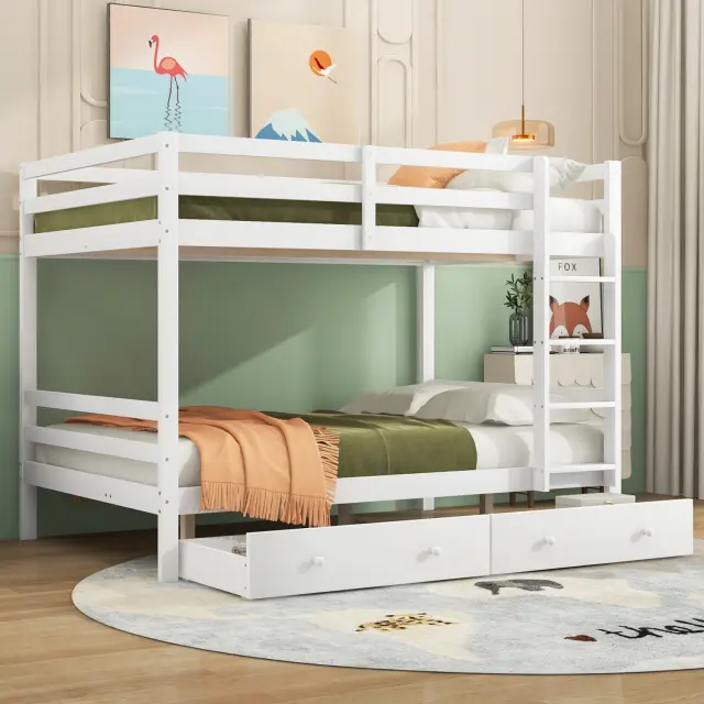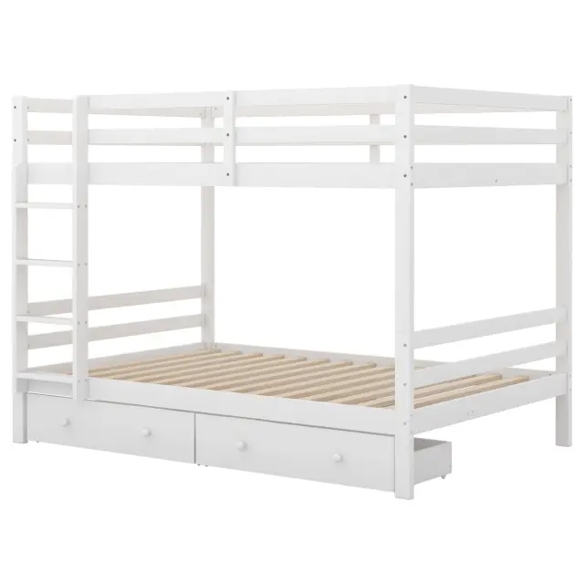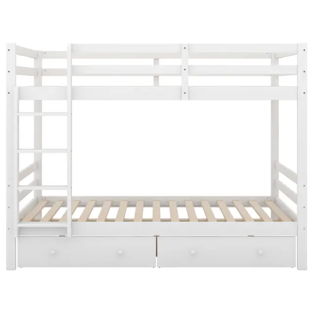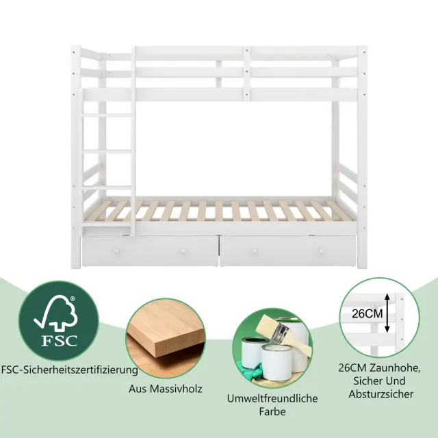 140x200cm pogradna postelja za otroke s predali, shrambo, visokimi varnostnimi ograjami, bela