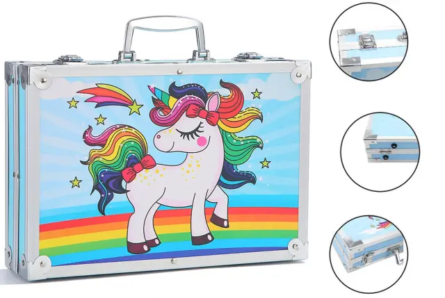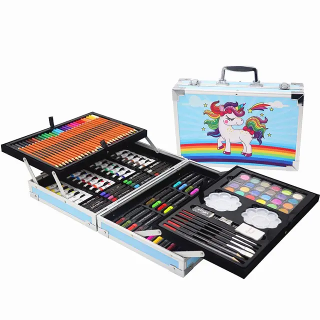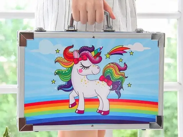 Umetniški komplet 145 elementov bo spodbudil otrokovo domišljijo in ustvarjalne sposobnosti . V čarobnem kovčku je vse, kar potrebujete za zabavo : barvice, flomastri, pasteli, barve in drugi predmeti, uporabni za umetniško ustvarjanje: ravnilo, radirka, čopič itd.
