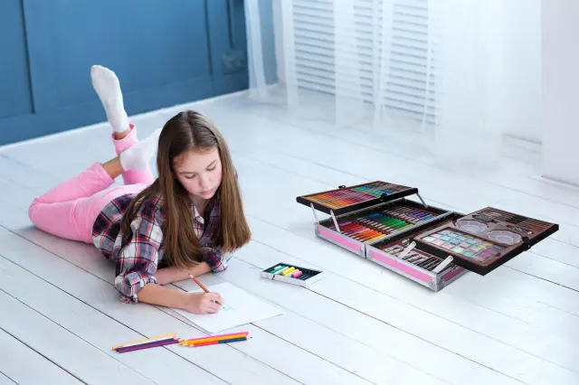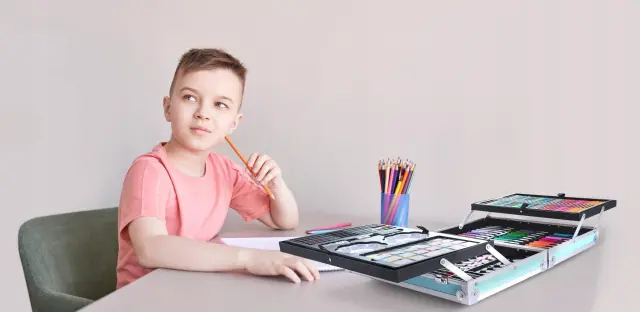 Likovni set ni samo za otroke. Bogata paleta barv in različni dodatki vam bodo koristili pri skiciranju, barvanju in številnih drugih delih. Prebudite umetnika v sebi in se izrazite skozi barvo! Razširite svojo domišljijo in spretnosti s kompletom.