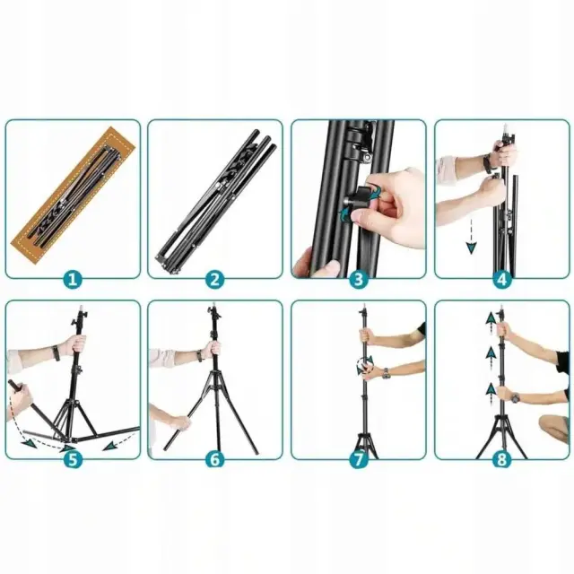 Opremljena z nastavljivim stativom do 220 cm in daljincem, vam omogoča popoln nadzor nad osvetlitvijo ter enostavno fotografiranje brez dodatne pomoči.