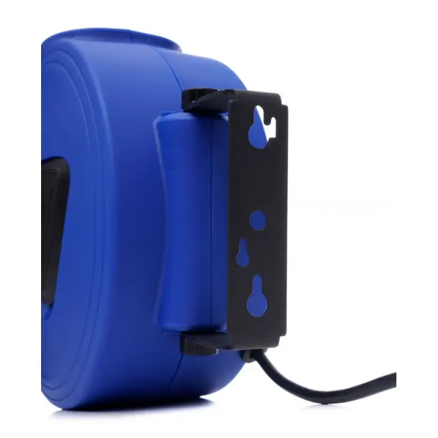 Stabilno ohišje kabelskega bobna je izdelano iz polipropilena in ima stenski nosilec. Zato je mogoče boben namestiti na steno ali strop s priloženim montažnim materialom. Kabelski boben je še vedno mogoče prilagodljivo uporabljati, ker lahko ohišje odstranite iz nosilca. Poleg tega lahko nosilec zasukate za 180 °. Korito bobna zagotavlja enostaven transport.