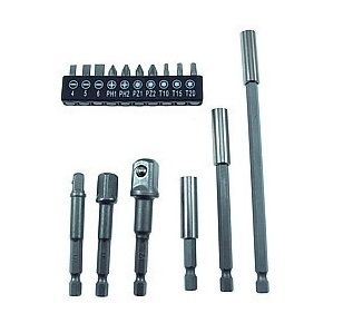 Set nastavkov za izvijače: 10 nastavkov + 6 adapterjev.