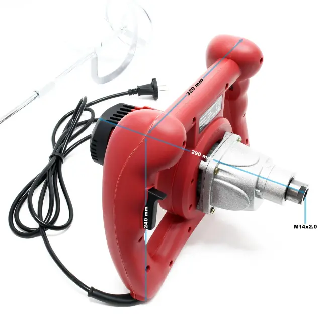 Ponosno predstavljamo 1600W električni mešalnik za lepila in malte M14 130mm, vrhunski pripomoček za vsakega profesionalnega mojstra ali domačega mojstra. Ta močan mešalnik je zasnovan za mešanje lepil, malt, barv in drugih gostih materialov z lahkoto in učinkovitostjo. Z močjo 1600W in M14 vretenom, ta mešalnik zagotavlja hitro in enakomerno mešanje, kar vam prihrani čas in trud pri vaših gradbenih projektih.
