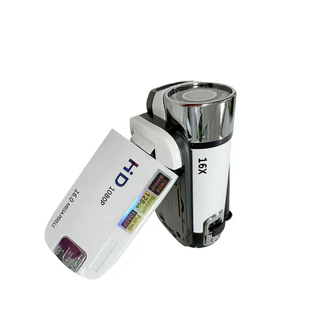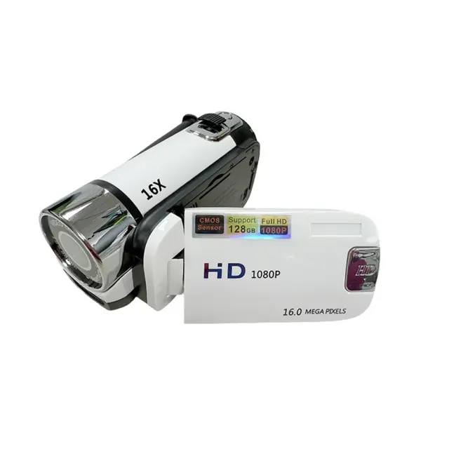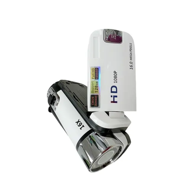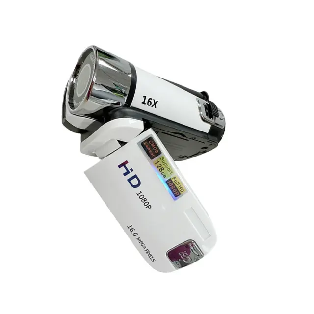 16MP HD Digitalna Kamera Kamkorder s Spominsko Kartico - 1080p, 16x Zoom White