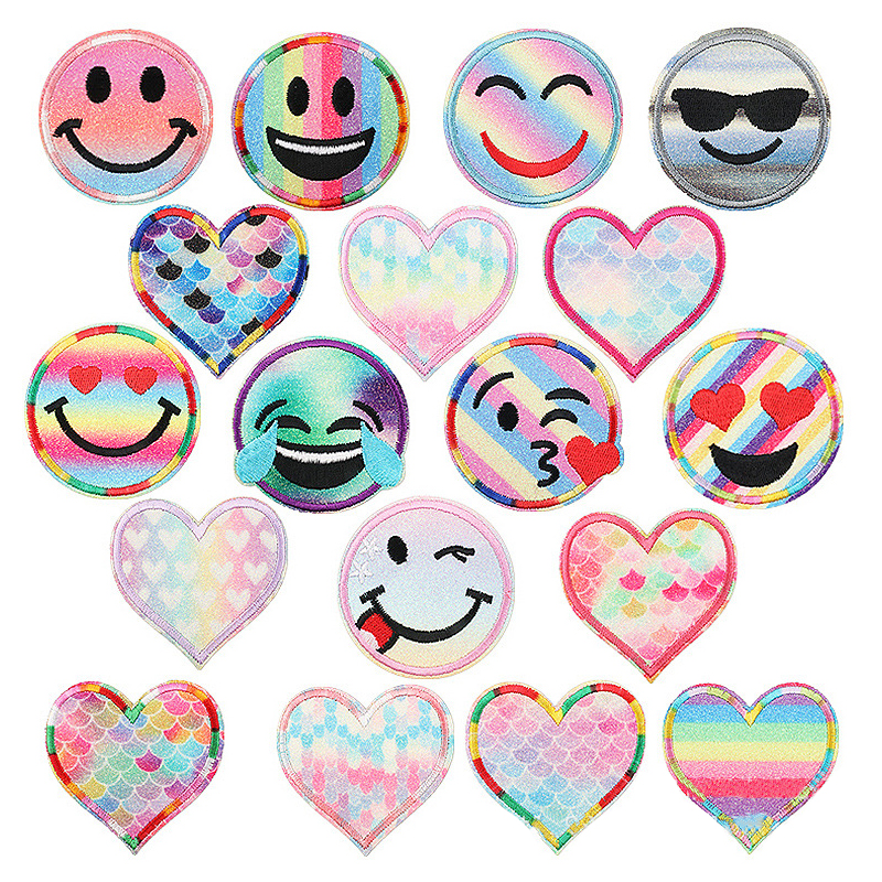 Pisani dizajni: ti našitki z živahno mešanico prelivajočih se smeškov in barvitih vezenin v obliki srca vašim stvarem dodajo igriv in oseben pridih.