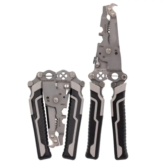 Večfunkcijska zasnova: To 18-v-1 orodje za odstranjevanje izolacije združuje več funkcij v eni kompaktni zasnovi, vključno z odstranjevanjem izolacije, rezanjem, stiskanjem in še več. Je idealno orodje za električarje in domače mojstre, ki se ukvarjajo z različnimi elektroinštalacijskimi opravili.