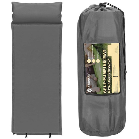 Vas čaka turistično potovanje? Med prtljago ne pozabite vključiti samonapihljive vzmetnice. Naša podloga za kampiranje znamke Springos je izdelek, ki združuje številne prednosti: je lahka (tehta le 1 kg), kompaktna in prenese obremenitev do 110 kg. Turistična podloga bo uporabna na vsakem kampiranju, izletu v hribe ali za preživljanje popoldneva na plaži. Če iščete dodatek, pripravljen za uporabo v samo nekaj minutah, se odločite za našo podlogo za kampiranje. Ta vrsta postelje vam bo zagotovila udoben počitek in dober spanec. Samonapihljiva podloga vsebuje posebno, elastično poliuretansko peno, ki samodejno absorbira zrak, ko odprete pokrov. Ko želite podlogo uporabiti, jo razgrnite, sploščite in odprite ventil. Videli boste, kako se napihne. Blazino je treba zaradi svoje velikosti napihniti ročno. Na koncu je treba podlogo rahlo napihniti z usti, da je dovolj čvrsta.