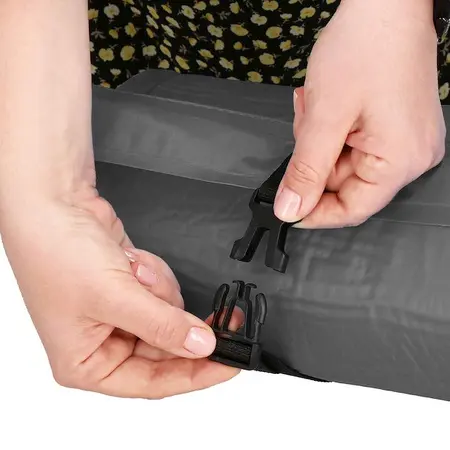 Samonapihljiva blazina je odlična alternativa napihljivim vzmetnicam. Zagotavlja odlično izolacijo pred mrzlo zemljo in je hkrati enostaven za transport. Po počitku preprosto odprite ventil, odstranite čep iz blazine in začnite zvijati podlogo proti ventilu. Zvito podlogo zavarujte s pritrdilnimi zaponkami in jo shranite v prevleko. Če morate podlogo očistiti, to storite z vlažno krpo iz mikrovlaken in pred zvijanjem podloge dobro posušite.