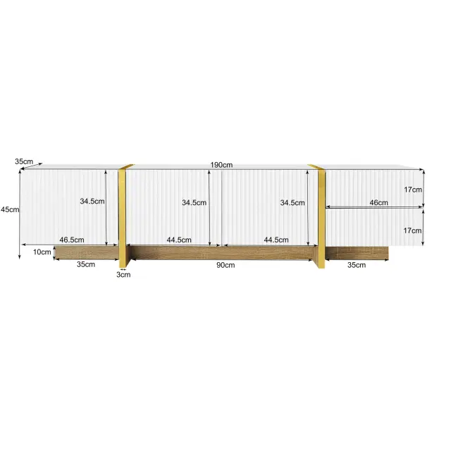 190 cm TV omarica, 3 vrata, 2 predala, bela/zlata/lesni vzorci