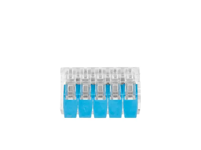 Naša inštalacijska sponka je opremljena s 5 vhodnimi konektorji, ki omogočajo enostavno in varno povezovanje žic z različnimi preseki. Sponka je primerna za žice z presekom od 0,2 mm2 do 4 mm2, kar vam omogoča širok spekter uporabe.