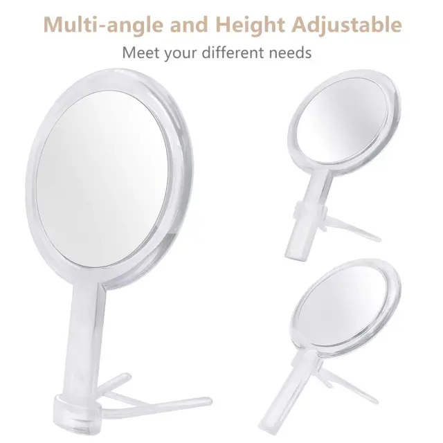 【Dvostransko ročno ogledalo】Z možnostmi navadne in 10-kratne povečave je to ogledalo popolno za vse vaše lepotne potrebe. Običajni obraz visoke ločljivosti daje jasen in običajen pogled na celoten obraz, medtem ko obraz z 10-kratno povečavo omogoča, da se osredotočite na določena področja za ličenje, britje, pinceto, puljenje in drugo.【HD brez popačenj】Ogledalo je narejeno iz visoke - kakovostno optično steklo, ki zagotavlja jasne, nepopačene slike, ki popolnoma odražajo vaš makeup. Za razliko od ogledal nižje kakovosti vam ni treba skrbeti za zamegljenost ali popačenje.【Ročna in namizna oblika】To ročno ogledalo ima dodatno stojalo, ki omogoča, da stoji na mizi kot namizno ogledalo. Kot ogledala lahko prilagodite tako, da pomaknete nosilec vzdolž ročaja, da ustreza vašim različnim potrebam.【Prenosno potovalno ogledalo】Lahka in prenosna oblika, ki jo lahko postavite na mizo ali v katero koli torbico, torbo za čez ramo, nahrbtnik ali kovček itd. 【Visokokakovosten material】 Izdelan iz visokokakovostnega prozornega akrila z zmerno trdoto, bolj vzdržljiv, varen in lahek. Ostaja v dobrem stanju tudi po letih uporabe. Odporen proti rji in vodoodporen, popoln za uporabo v kopalnici.