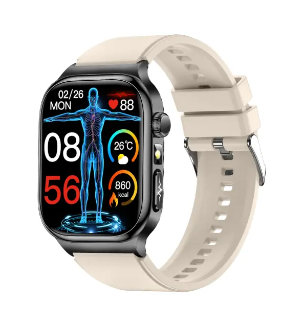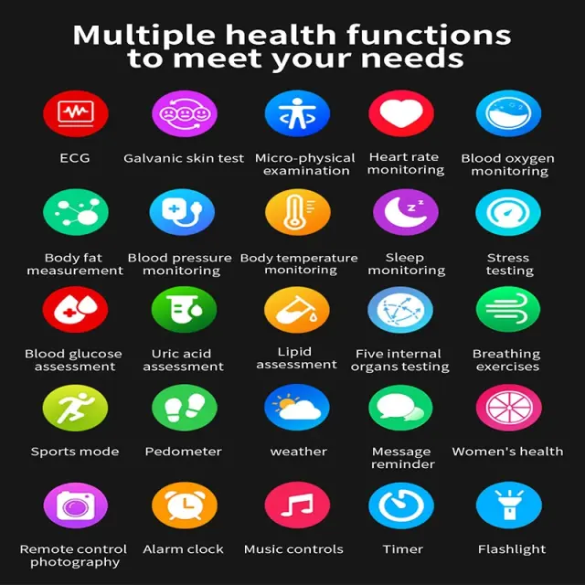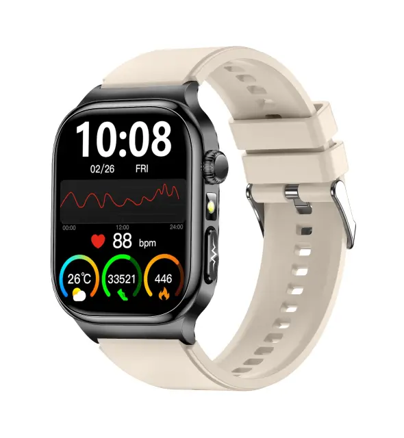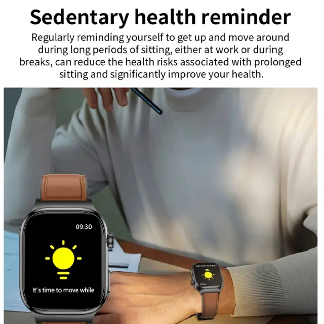 Celovito sledenje zdravju: Spremljajte svoje dobro počutje z naprednimi funkcijami za sledenje zdravju, vključno s spremljanjem srčnega utripa, merjenjem kisika v krvi (SpO2) in funkcionalnostjo EKG. Ta pametna ura zagotavlja dragocene vpoglede v vaše srčno-žilno zdravje in splošno raven telesne pripravljenosti. Vključuje tudi funkcije, kot so sledenje spanju, opomniki za sedeči položaj in sledenje zdravju žensk, kar vam pomaga, da ostanete proaktivni glede svojega zdravja. Upoštevajte, da so funkcije krvnega tlaka, kisika v krvi in srčnega utripa samo za referenco in jih ne smete uporabljati za medicinske namene ali za zamenjavo profesionalne medicinske opreme.