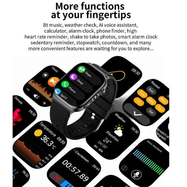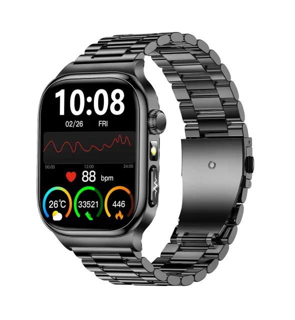 Celovito sledenje zdravju: Spremljajte svoje dobro počutje z naprednimi funkcijami sledenja zdravju, vključno s srčnim utripom, kisikom v krvi (SpO2) in spremljanjem EKG. Integrirani čip za srčni utrip in SpO2 (Zesheng ZS8002) zagotavlja neprekinjeno spremljanje, medtem ko čip EKG (Zesheng ZS8002) ponuja podrobno analizo zdravja srca. Bodite obveščeni o vitalnih znakih svojega telesa in prejemajte opozorila o nenormalnih odčitkih, kot sta visok srčni utrip ali povišana telesna temperatura. Ta pametna ura podpira tudi sledenje zdravju žensk, dihalne vaje in opomnike za sedeči položaj, kar spodbuja celosten pristop k upravljanju zdravja. Upoštevajte, da so funkcije krvnega tlaka, kisika v krvi in srčnega utripa samo za referenco in ne smejo nadomestiti profesionalne medicinske opreme. Čip Realtek 8773EWE zagotavlja natančno in zanesljivo obdelavo podatkov za vse zdravstvene meritve.