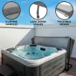 Ta prevleka za masažno kad, ki združuje funkcionalnost, varnost in stil, vaši izkušnji masažne kadi doda dodaten nivo lahkotnosti. S svojim elegantnim sivim usnjenim zaključkom zlahka dopolnjuje vsak zunanji dekor in doda pridih elegance vašemu prostoru za masažno kad.