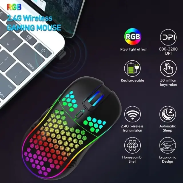 2.4G Brezžična miška za polnjenje - Nastavljiv DPI, Ergonomska oblika Black