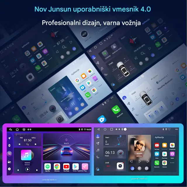 Bogata povezljivost: povezljivost WIFI omogoča spletno posodabljanje zemljevidov in prometne informacije v realnem času; povezljivost Bluetooth omogoča seznanjanje mobilnih telefonov s sistemom v vozilu za brezžično predvajanje glasbe in telefonske klice; vmesnik USB podpira branje datotek v različnih formatih, razširitev naprav za shranjevanje in obogatitev virov zabave.