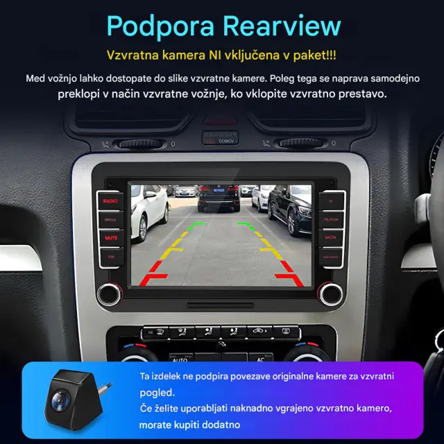 Kamera za vzvratno vožnjo: Opremljena je s kamero, ki samodejno prikazuje sliko zadnjega dela vozila v realnem času, ko je vozilo vključeno v vzvratno prestavo, kar vozniku pomaga natančneje vzvratno zapeljati v garažo in poveča varnost vožnje.