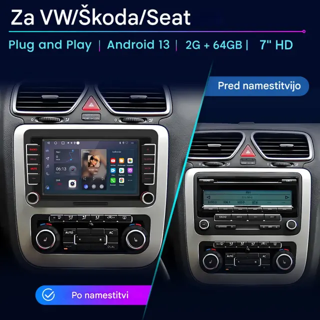 Ta gostitelj je prilagojen za VW GOLF 5 6 Touran Polo 6R, s konfiguracijo pomnilnika 2+64 GB, s 7-palčnim zaslonom, gladkim delovanjem in zadostnim pomnilniškim prostorom za vsakodnevno navigacijo, zabavo in druge potrebe.