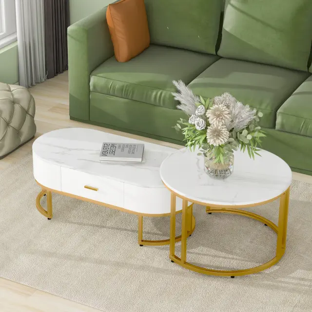 2-delna klubska mizica, kovinsko zlata, elegantne mizice za dnevno sobo, moderne vgradne mizice