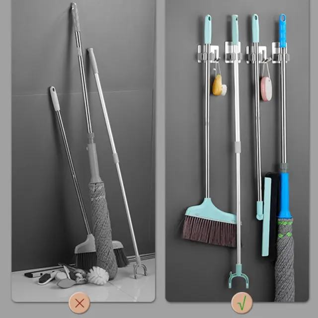 Space Saving Design: Prosimo, upoštevajte: to niso originalni deli. Povečajte svoj prostor s tem stenskim držalom za mop. Popoln je za organizacijo čistilnih pripomočkov v vaši kopalnici, kuhinji ali garaži. Kompaktna zasnova ohranja vaše mope, metle in druge potrebščine lepo shranjene in dvignjene od tal, preprečuje nered in ustvarja bolj organizirano okolje. To držalo za mop je odlična rešitev za majhna stanovanja, pralnico in vsa območja, kjer je prostora malo. Konstrukcija iz nerjavečega jekla zagotavlja, da bo zdržala leta.