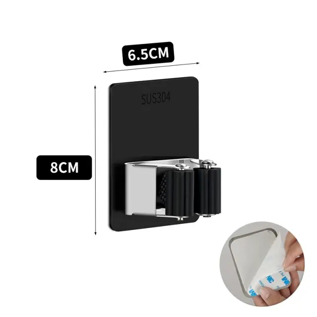 Easy Installation: Prosimo, upoštevajte: to niso originalni deli. Vrtanje ni potrebno! To držalo za mop ima močno lepilno podlago za enostavno in hitro namestitev. Preprosto odlepite zaščitno folijo in jo prilepite na čisto, gladko površino. Lepilo zagotavlja varen oprijem in drži vaše mope in metle na mestu. Ta način namestitve je idealen za najemnike ali vse, ki se želijo izogniti poškodbam sten. Lepilo je zasnovano za delovanje na različnih površinah, vključno s ploščicami, steklom in kovino. Uživajte v enostavni namestitvi in začnite organizirati svoje čistilne pripomočke v nekaj minutah s tem priročnim držalom za mop.