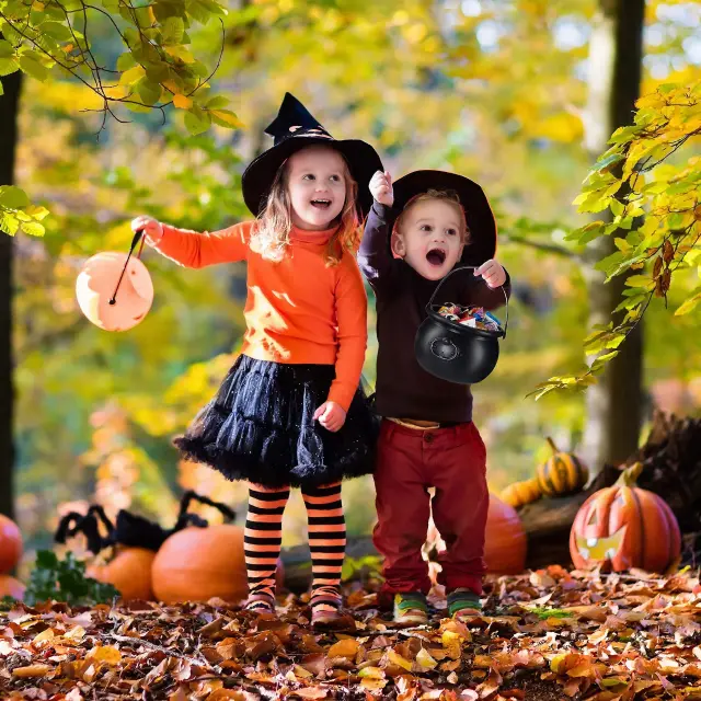 2 kosa Black kessel Witch Cauldron, vedro za sladkarije, kostumski dodatek za noč čarovnic, dekoracija, plastika, V x G: 13 x 19 cm, fant, dekleta