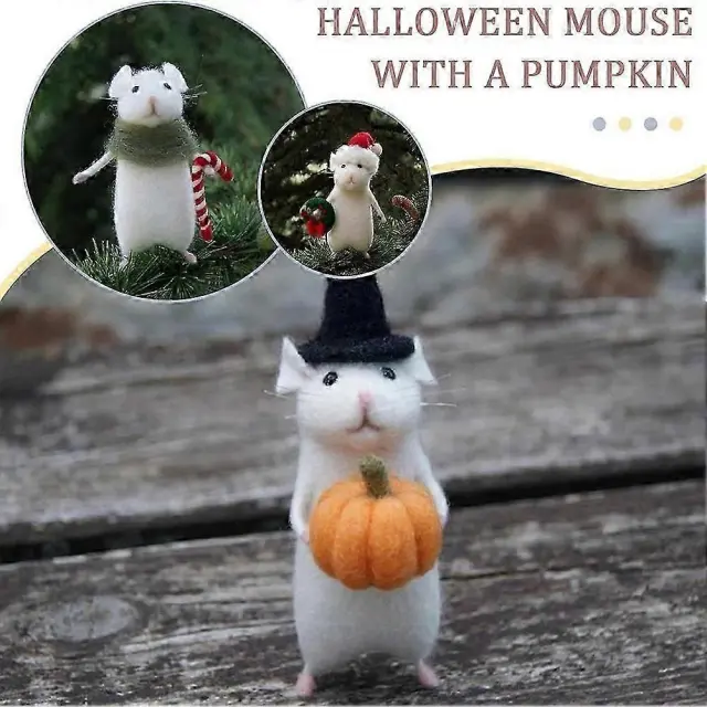 2 kosa miška za noč čarovnic, ročno izdelana volnena klobučevina, božični okras z miško, iglo, polstene buče, živali, dekoracija A