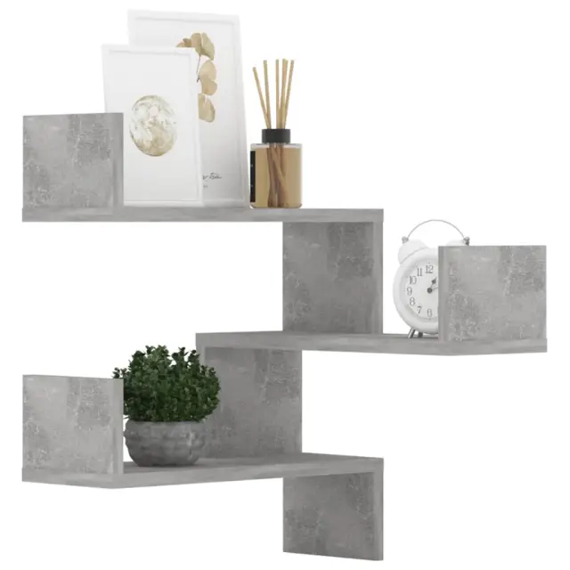 2 kosi Stenske kotne police - Stenske Police - Viseče police betonsko sive 40x40x50cm inž. les