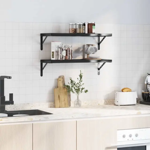 2 kosi Stenske Police - Viseče police 75x30x3 cm črna nerjaveče jeklo