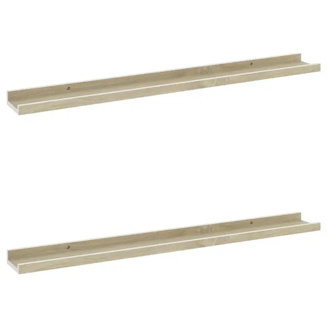 2 kosi Stenske Police - Viseče police bela in sonoma hrast 80x9x3 cm