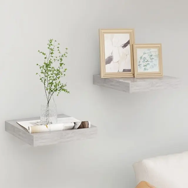 2 kosi Stenske Police - Viseče police betonsko sive 23x23,5x3,8 cm MDF