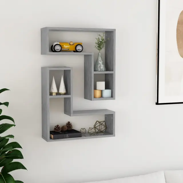 2 kosi Stenske Police - Viseče police betonsko siva 50x15x50 cm iverna plošča