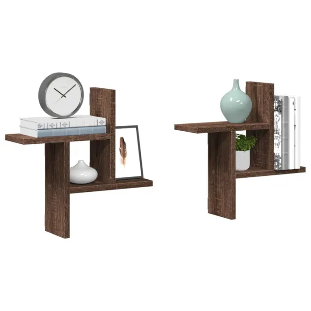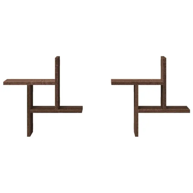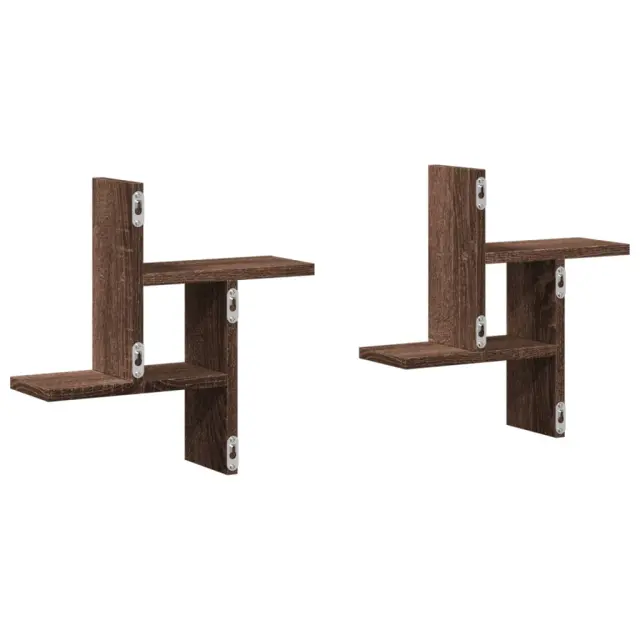 2 kosi Stenske Police - Viseče police rjavi hrast 38x12x38 cm inženirski les