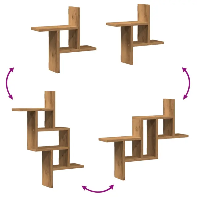 2 kosi Stenske Police - Viseče police artisian hrast 38x12x38 cm inženirski les