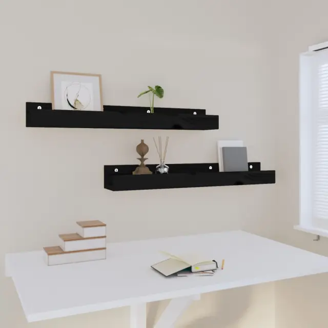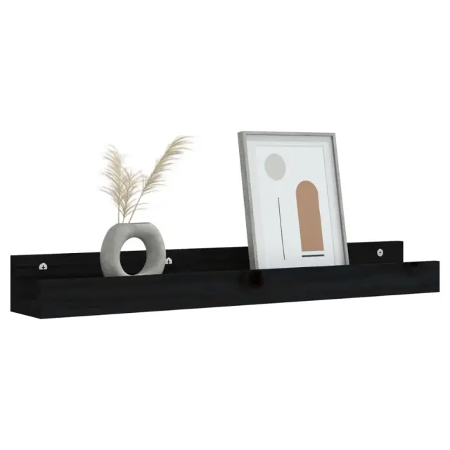 2 kosi Stenske Police - Viseče police črna 80x12x9 cm trdna borovina