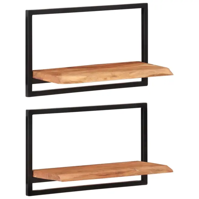 2 kosi Stenske Police - Viseče police 60x25x35 cm trden akacijev les in jeklo
