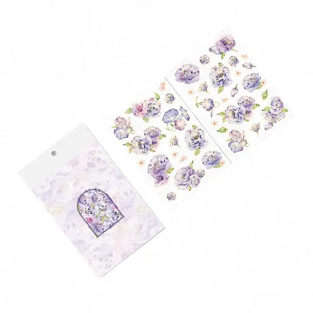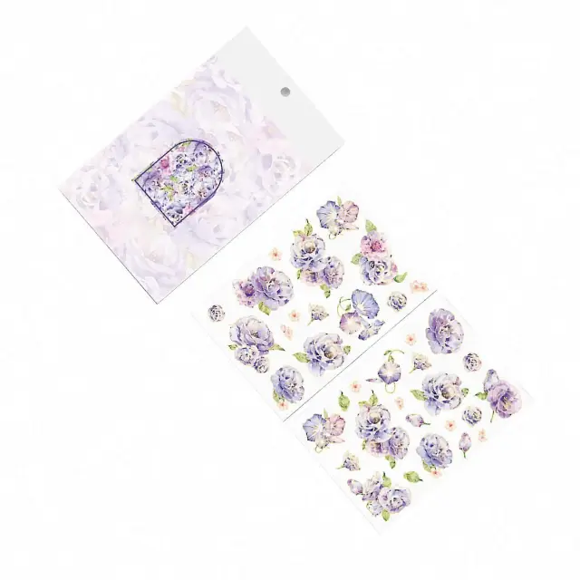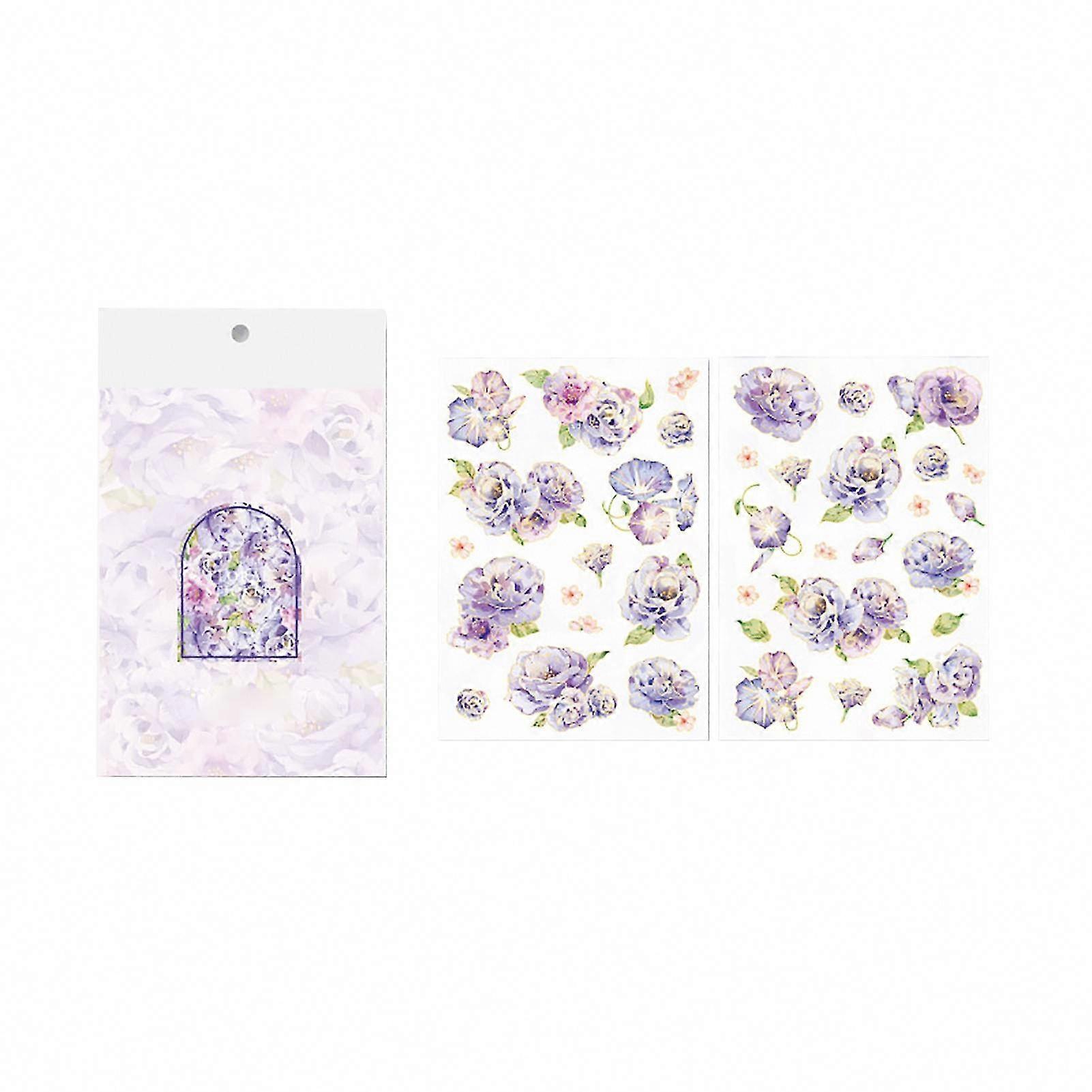 2 lista cvetličnih nalepk - enostavno odlepljenje, trpežne vodoodporne nalepke PET za beležke DIY obrti (vijolične)