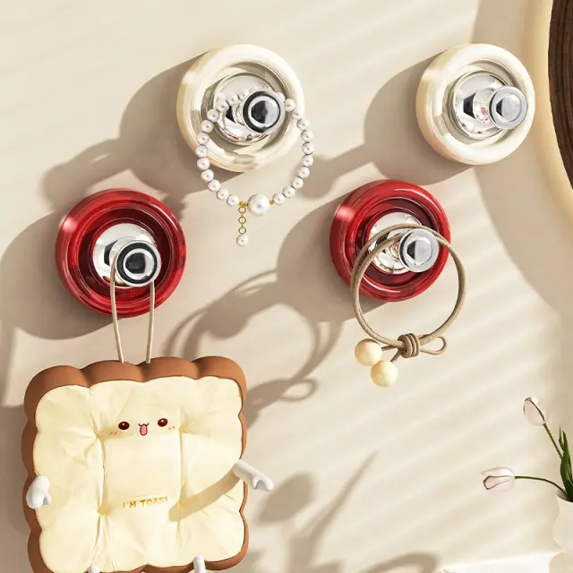 Močan vakuumski oprijem: Te sesalne kljuke uporabljajo napredno vakuumsko tehnologijo za zagotavljanje varnega in zanesljivega oprijema na gladkih površinah. Močan sesalni mehanizem zagotavlja, da kljuke ostanejo trdno na mestu, tudi v vlažnih okoljih, kot so kopalnice in kuhinje. Popolne so za obešanje brisač, halj, gobic za umivanje in drugih pripomočkov brez potrebe po vrtanju ali žebljih. Vakuumski dizajn jih naredi idealne za najemnike ali vse, ki se želijo izogniti poškodbam sten. Te kljuke so praktična in priročna rešitev za organizacijo vašega prostora in ohranjanje vaših potrebščin na dosegu roke. Močna sesalna skodelica zagotavlja dolgotrajen oprijem, kar vam daje mir, da so vaše stvari varne.