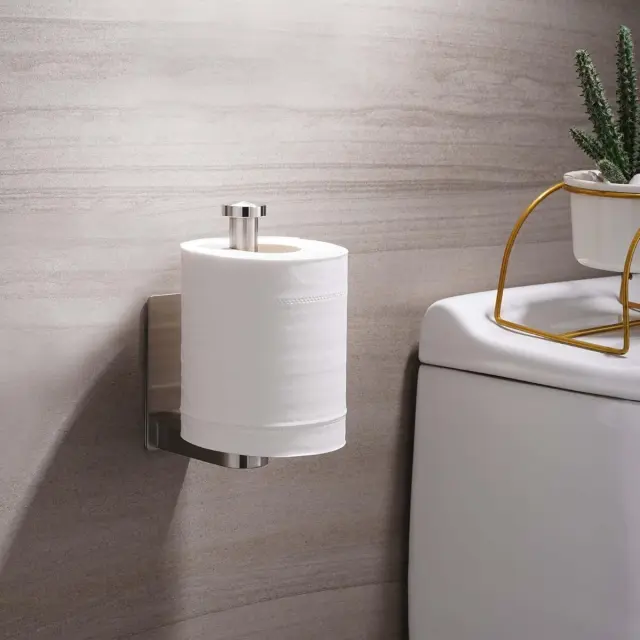 Enostavna namestitev: Prosimo, upoštevajte: to niso originalni deli. Ta samolepilni nosilec toaletnega papirja omogoča hitro, brezvrtinsko namestitev na ploščice, steklo ali les. Enostavno odstranite zaščitno folijo in pritiskajte nosilec na čisto površino; za najboljši oprijem počakajte 24 ur. Rešitev je idealna za najemnike in tiste, ki želijo ohraniti stene brez lukenj in poškodb ter hkrati imeti zanesljivo in estetsko rešitev v kopalnici ali kuhinji.