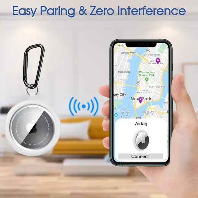 2-Pack TPU Zaščitno Ohišje Združljivo z Apple AirTag z obeskom za ključe White