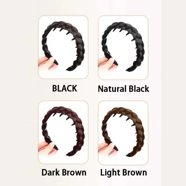 2-Pack Zigzag Fishtail Braid Headband With Teeth – Ročno pleten visok trak za lase, naraven videz Black