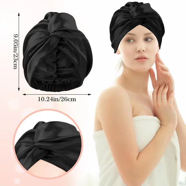 2-pak satenaste kapice za skodrane lase, dvojna plast, kapa za spanje za ženske Black