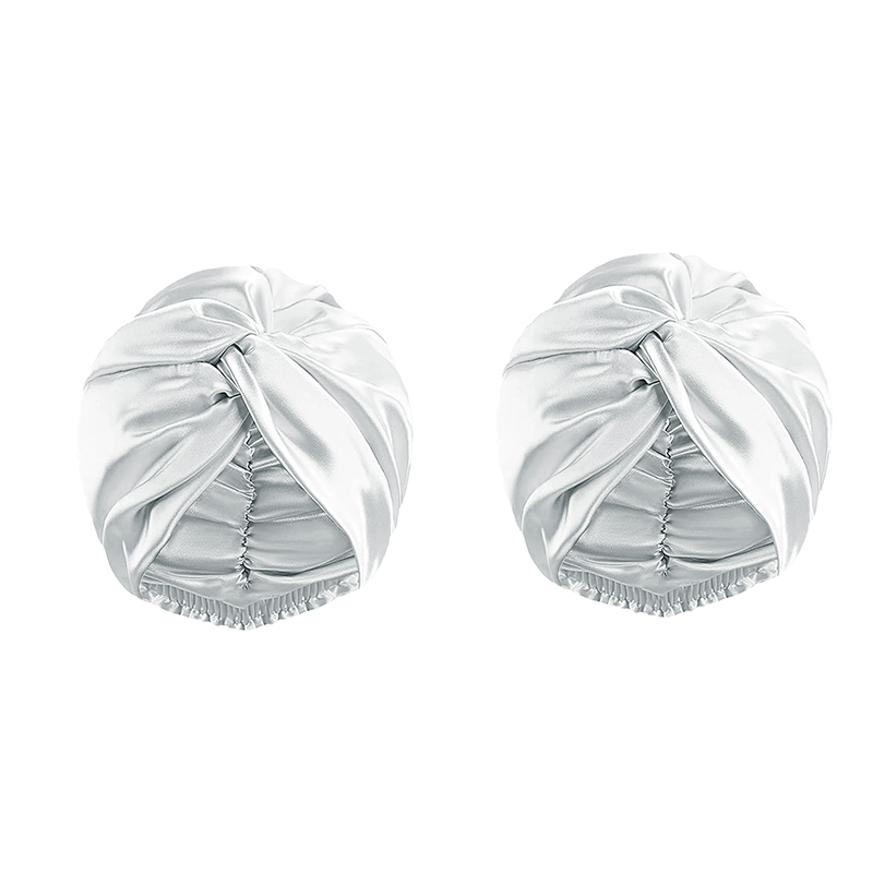 2-pak satenaste kapice za skodrane lase, dvojna plast, kapa za spanje za ženske Grey