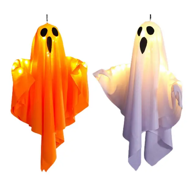 2 paketa okraskov za noč čarovnic na prostem, srhljivi viseči znaki duhov z lučko, ki deluje na baterije, okras vhodnih vrat za dvorišče za zaba