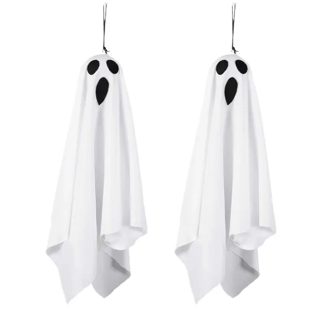 2 paketa okraskov za noč čarovnic na prostem, srhljivi viseči znaki duhov z lučko, ki deluje na baterije, okras vhodnih vrat za dvorišče za zaba
