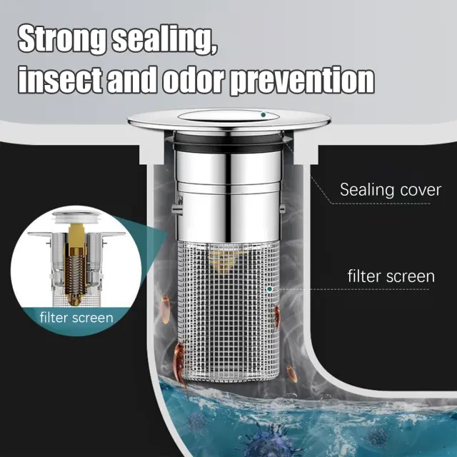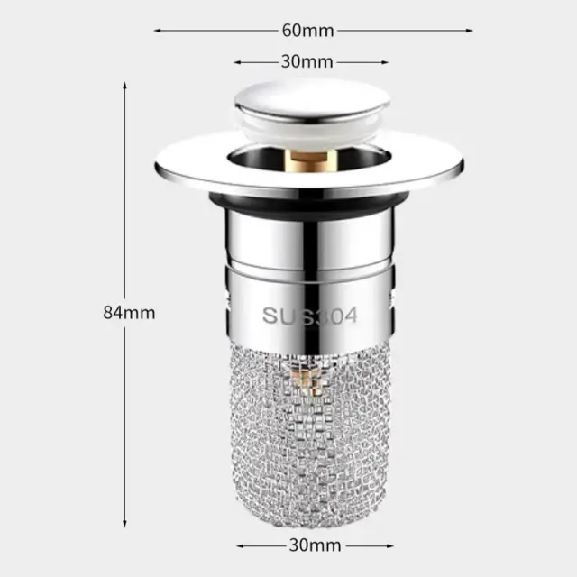 Z odtočnim sitom, ki preprečuje zamašitev odtoka: Čep pomivalnega korita je izdelan iz visokokakovostnega nerjavečega jekla in ustreza standardnim odtokom pomivalnega korita. Spodnji ventil ima praktično odtočno cedilo, ki zlahka ujame dlake in drobtine ter poskrbi za prost odtok.