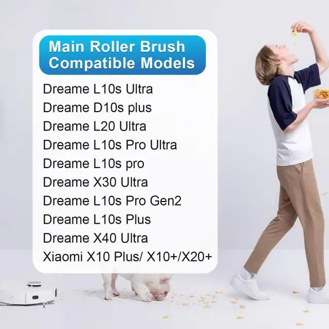 Izboljšano čiščenje: Nadomestna glavna krtača Dreame L10s Ultra je kombinacija ABS in silikonskih materialov, ki učinkovito zbirajo umazanijo, odpadke in dlake hišnih ljubljenčkov z različnih vrst tal, vključno s trdim lesom, ploščicami in preprogami.