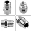 Univerzalna združljivost: Ta pahljačasta šoba ima standardni 1/4-palčni moški navoj NPT in je združljiva z večino tlačnih čistilcev in pištol za pršenje, zaradi česar je vsestranski dodatek k vaši čistilni opremi.