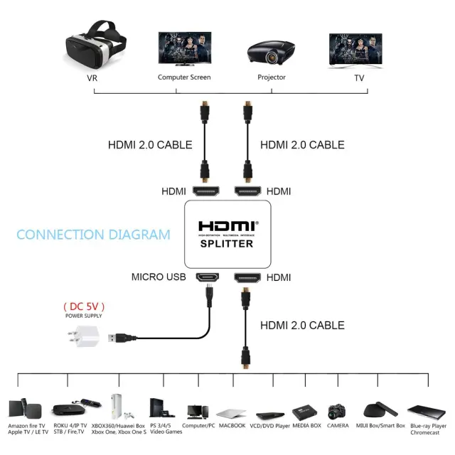 Združljivo z: PS3/PS4/Xbox 360/Xbox One, Apple TV/Mac Mini/Roku/Fire TV/Blue-Ray/DVD/VR ali HD-DVD predvajalnik/HD TV/ HD projektor/druge naprave Apple in Sony itd.