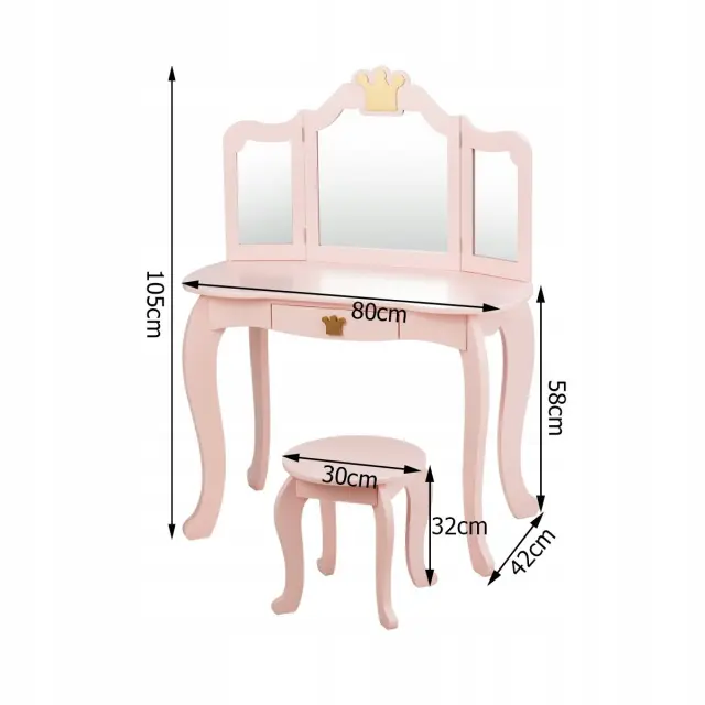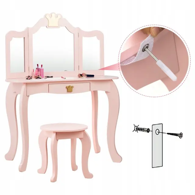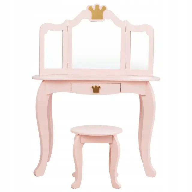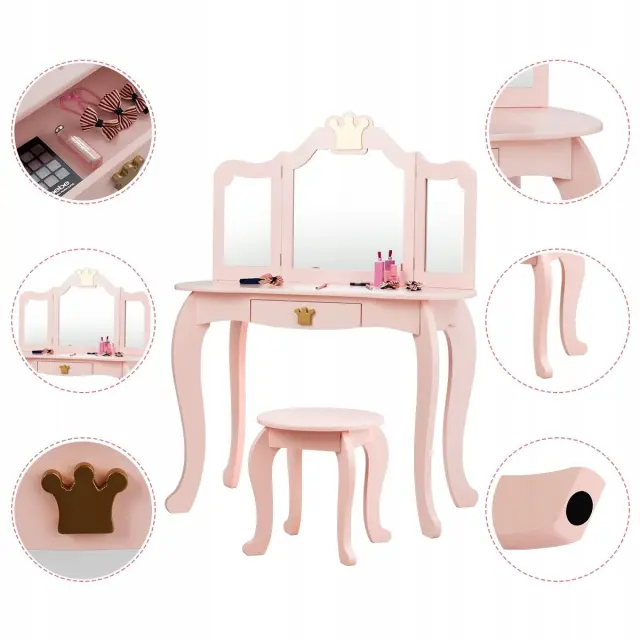 2 v 1 otroška toaletna mizica s stolčkom in odstranljivim ogledalom za dekleta